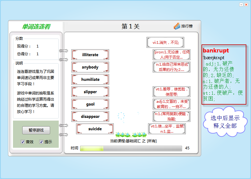 4、拼写完单词后,如果时间许可,建议使用单词连连看游戏。